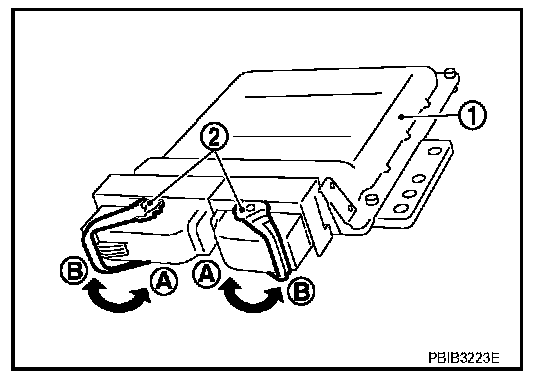 - When connecting ECM harness connector, fasten (B) it securely with a lever (2) as far as it will go as shown in the figure.