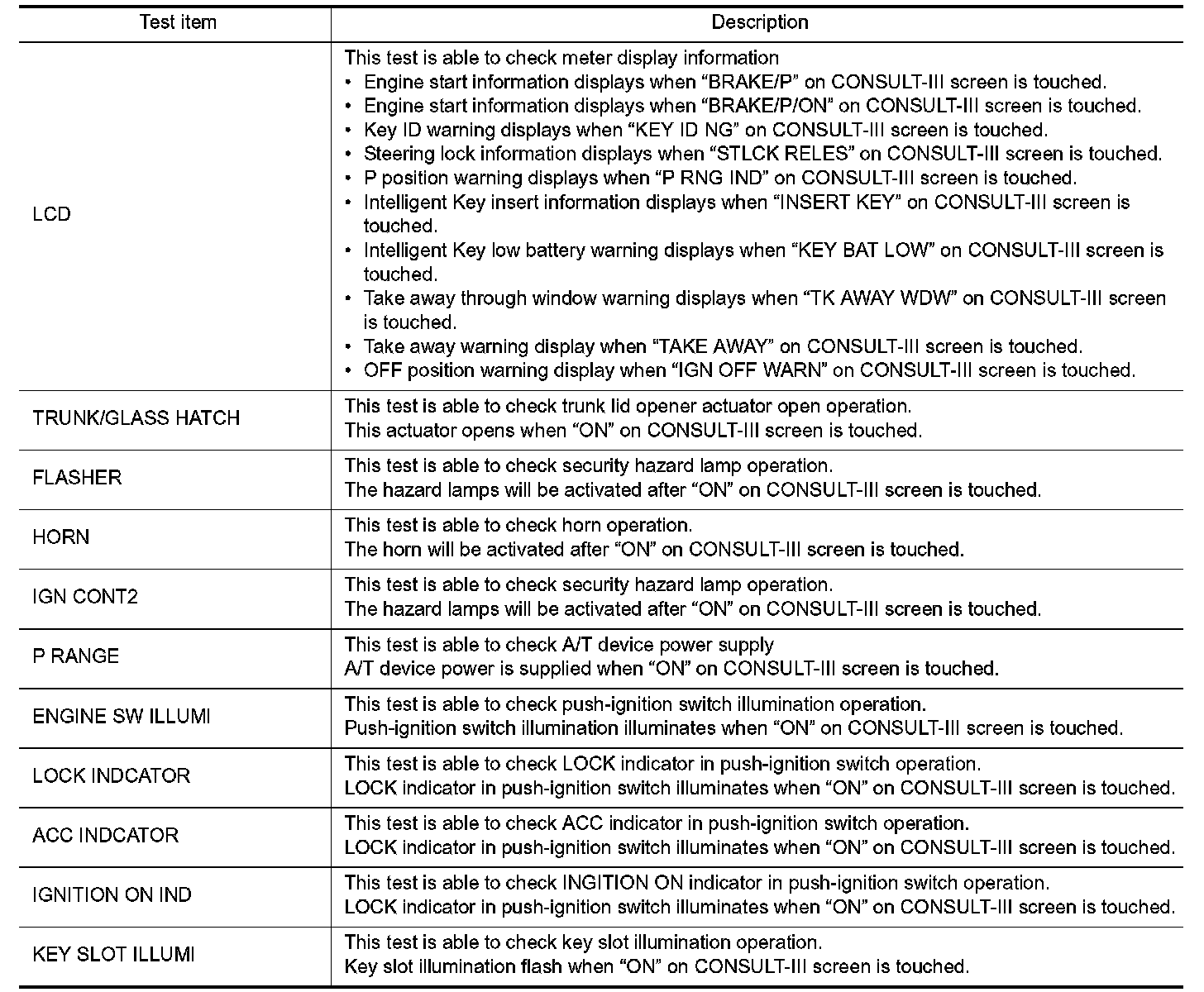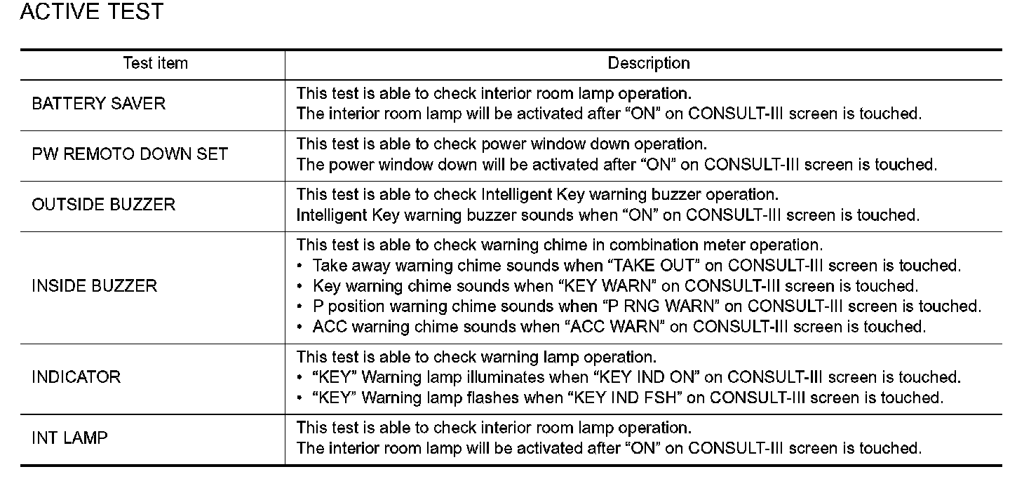 Intelligent Key: CONSULT-III Function (BCM - Intelligent Key)