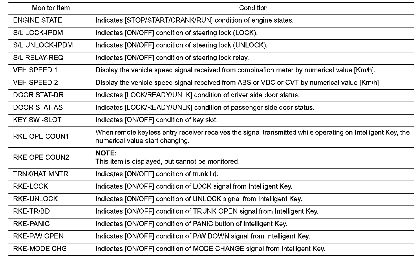 Intelligent Key: CONSULT-III Function (BCM - Intelligent Key)