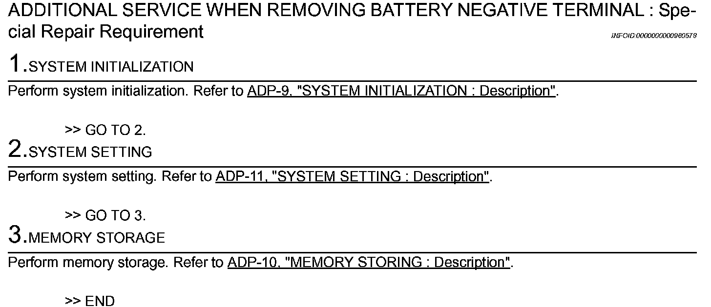 ADDITIONAL SERVICE WHEN REMOVING BATTERY NEGATIVE TERMINAL : Description