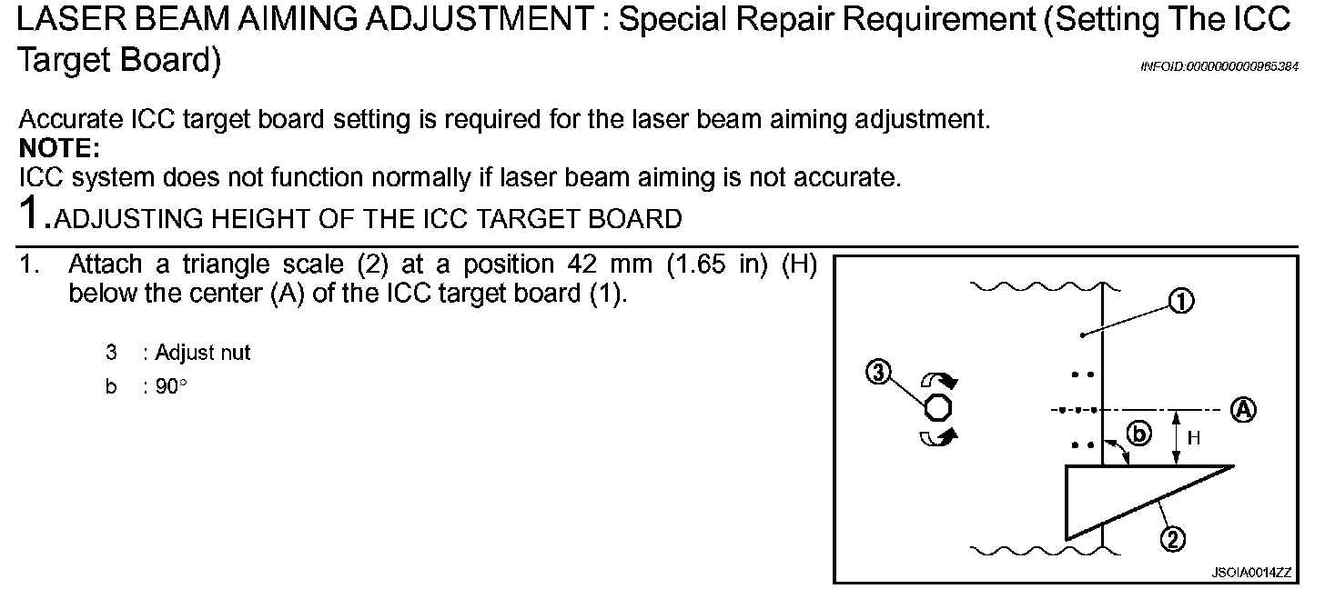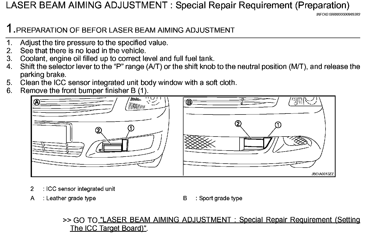 Adjust the laser beam aiming every time the ICC sensor integrated unit is removed or installed.