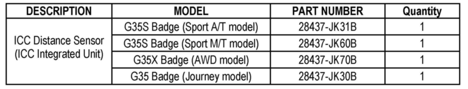 ^ Refer to section CCS in the Service Manual for ICC Sensor Integrated Unit (ICC Distance Sensor) replacement information.
