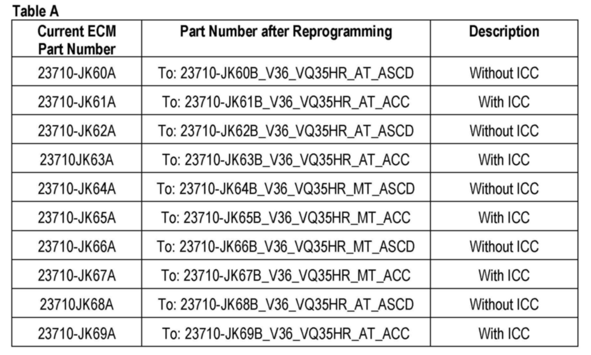 C. Compare the Part Number you wrote down to the numbers in the Current ECM Part Number column in Table A.