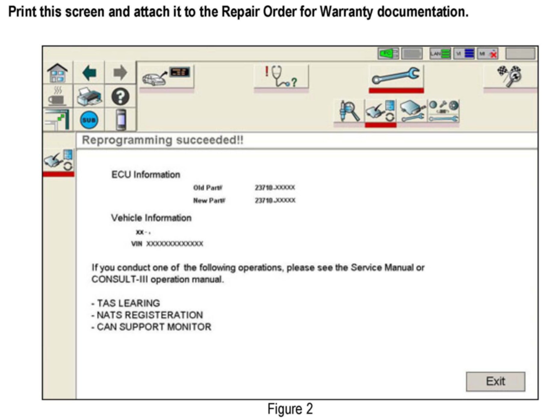 3. If this bulletin applies and you have performed ECM reprogramming, when complete the screen in Figure 2 appears.