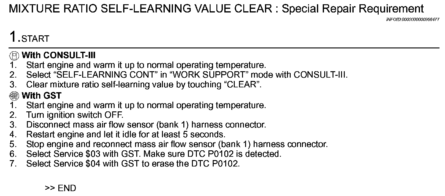MIXTURE RATIO SELF-LEARNING VALUE CLEAR: Special Repair Requirement
