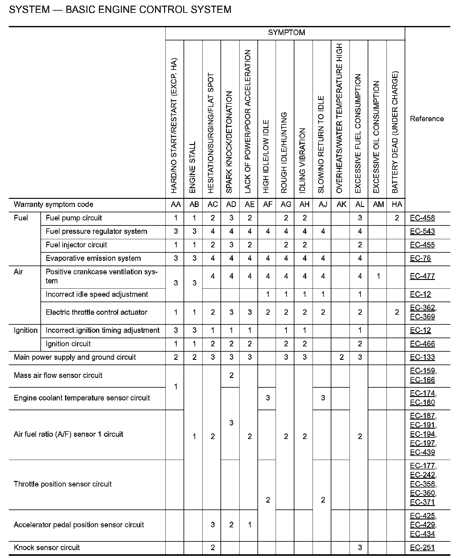 SYMPTOM DIAGNOSISENGINE CONTROL SYSTEM SYMPTOMS