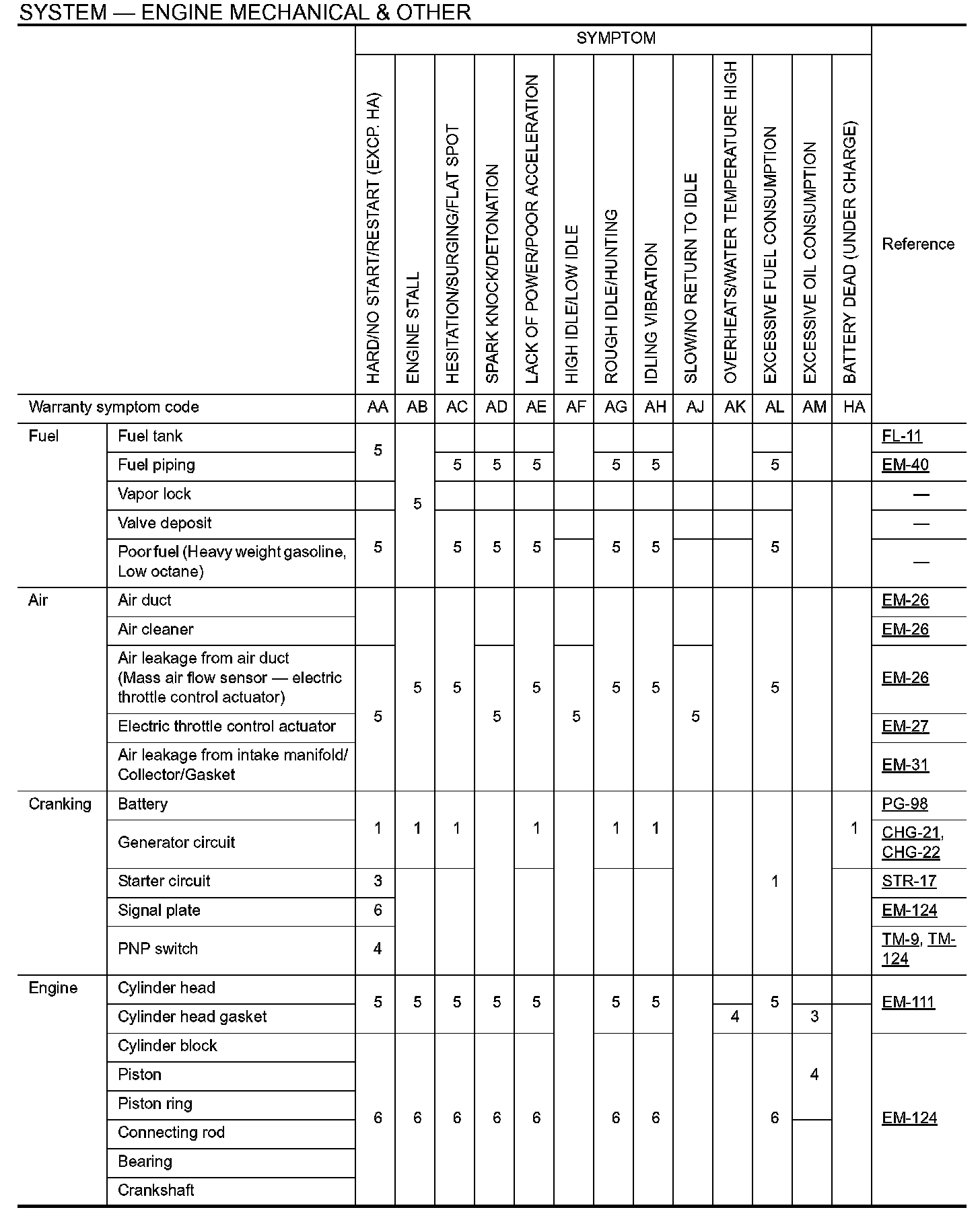 SYSTEM - ENGINE MECHANICAL & OTHER