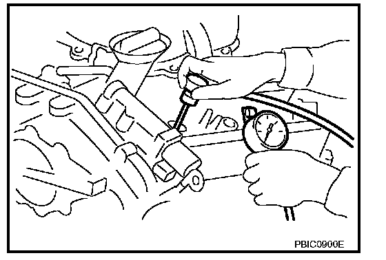 8. With accelerator pedal fully depressed, turn ignition switch to "START" for cranking. When the gauge pointer stabilizes, read the compression pressure and the engine rpm. Perform these steps to check each cylinder.