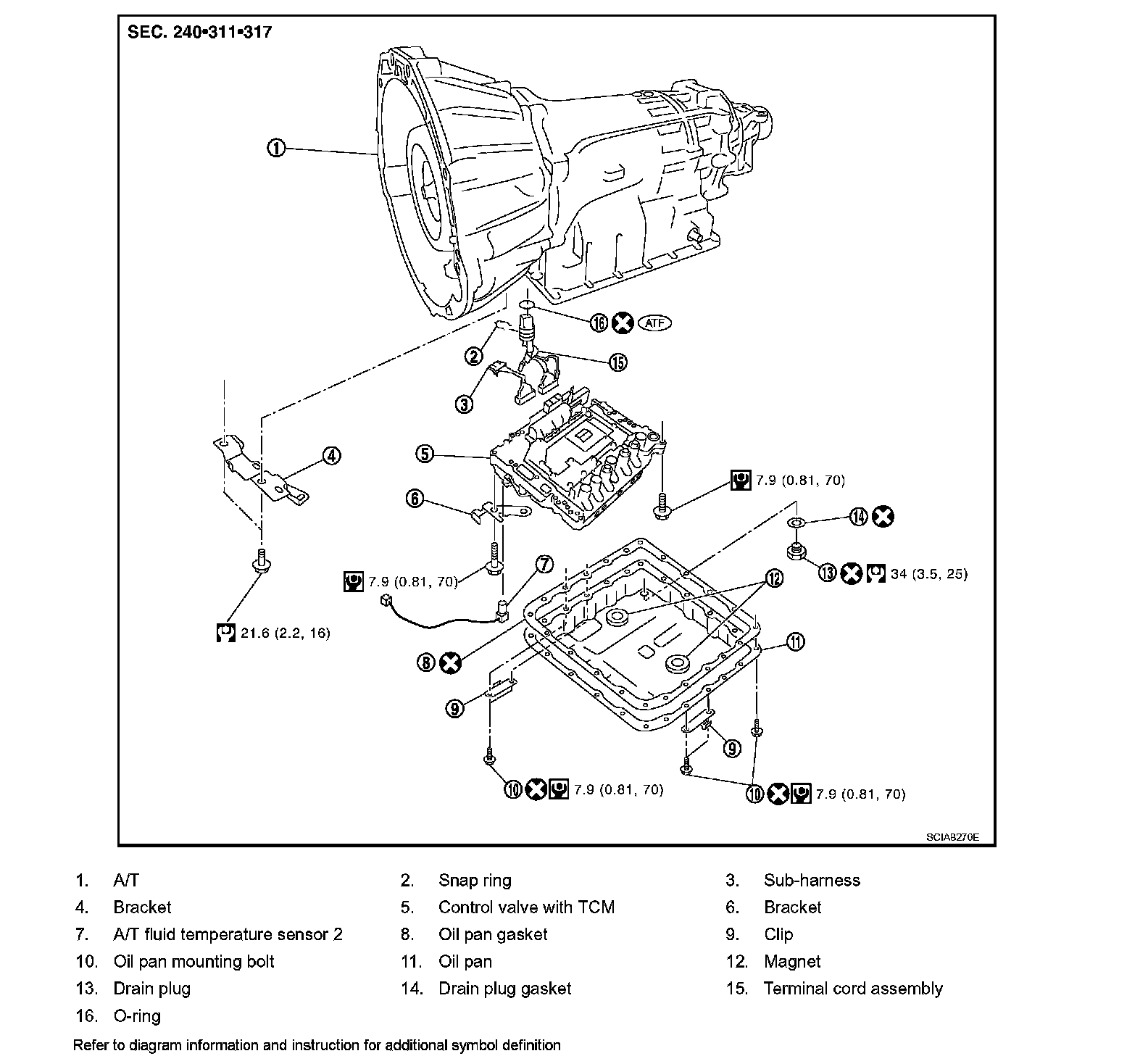 2. Drain ATF through drain plug.