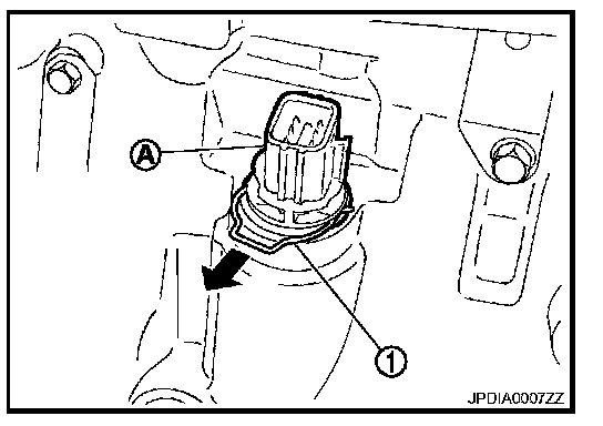 15. Disconnect revolution sensor connector (A).