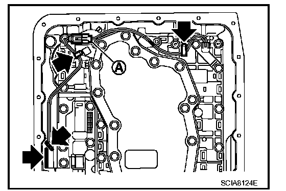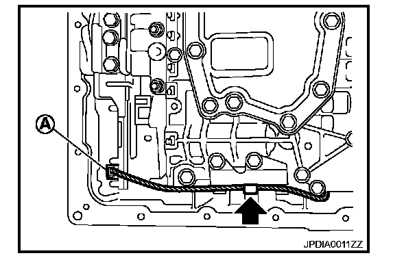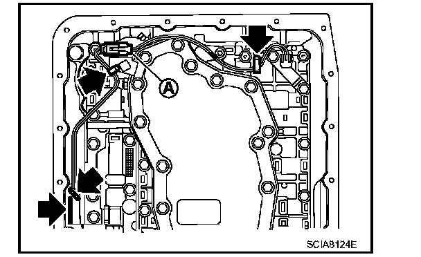 2. Install A/T assembly harness connector (A) to control valve with TCM.