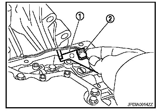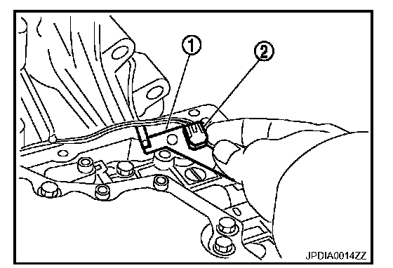 5. Install bracket (1) to A/T fluid temperature sensor 2 (2).