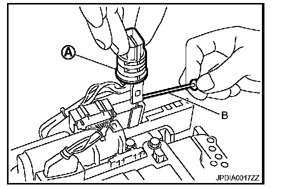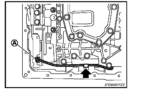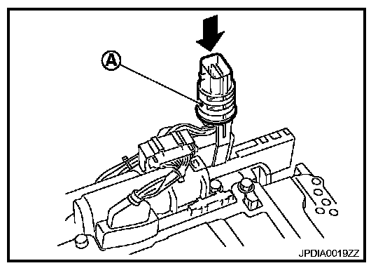 9. Push A/T assembly harness connector (A).