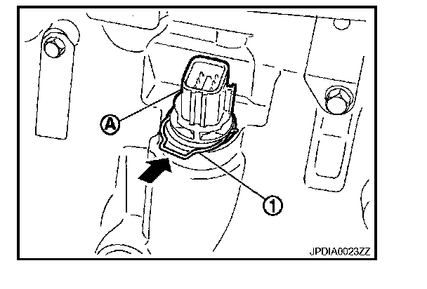 4. Install new O-ring (1) in A/T assembly harness connector (A).