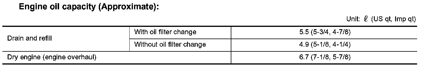 ^ The refill capacity depends on the engine oil temperature and drain time. Use these specifications for reference only.