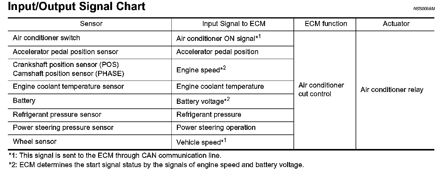 AIR CONDITIONING CUT CONTROLInput/Output Signal Chart
