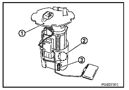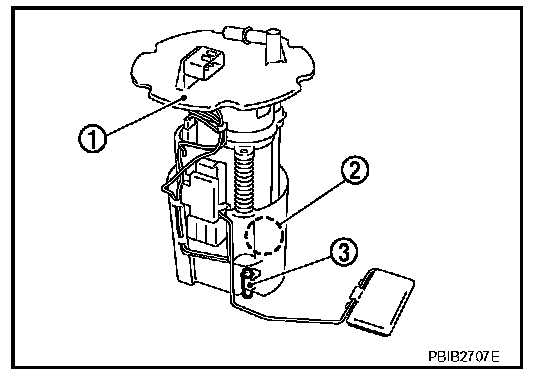 The sensor detects a fuel level in the fuel tank and transmits a signal to the "unified meter and A/C amp.". The "unified meter and A/C amp." sends the fuel level sensor signal to the ECM through CAN communication line.