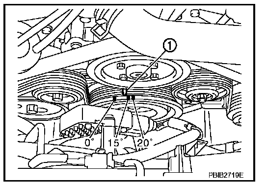 2. Connect ignition coil No. 1 (1) and spark plug No. 1 with suitable high-tension wire A as shown, and attach timing light clamp B to this wire.