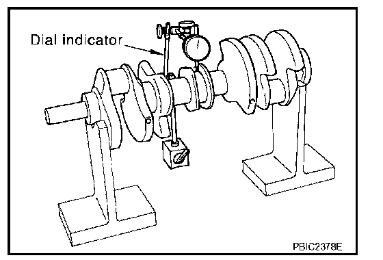 ^ While rotating crankshaft, read the movement of the pointer on dial indicator (total indicator reading).