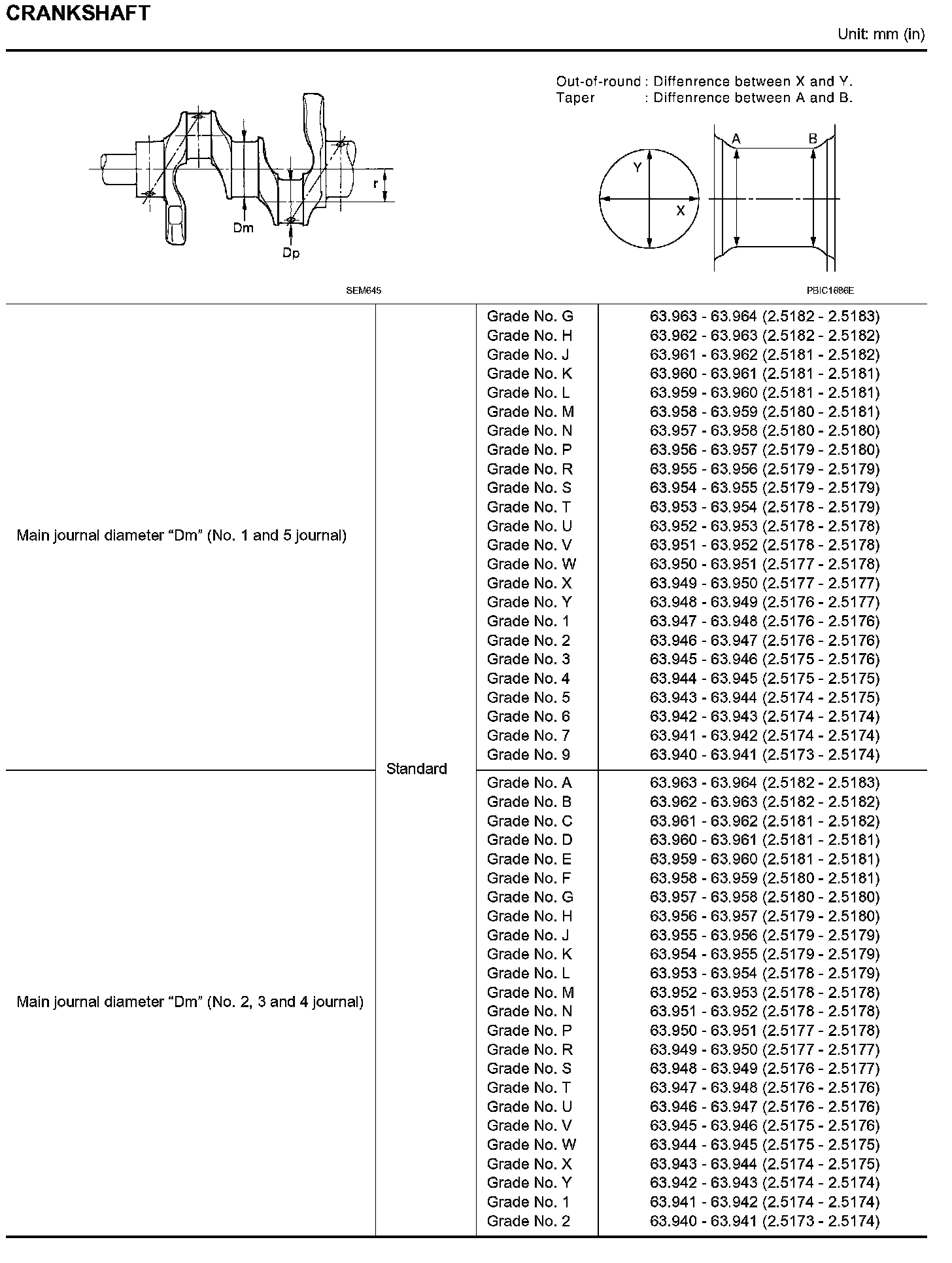 ^ If corrected, measure the bearing oil clearance of the corrected main journal and/or pin journal. Then select the main bearing and/or connecting rod bearing.