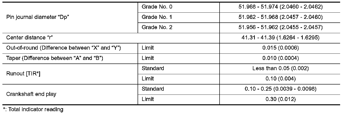 ^ If the measured value exceeds the limit, correct or replace crankshaft.