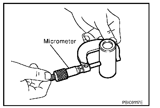 Measure the outer diameter of piston pin with micrometer.