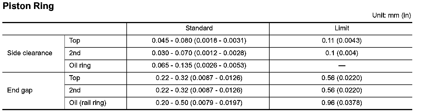 ^ If the calculated value exceeds the limit, replace piston and piston pin assembly.
