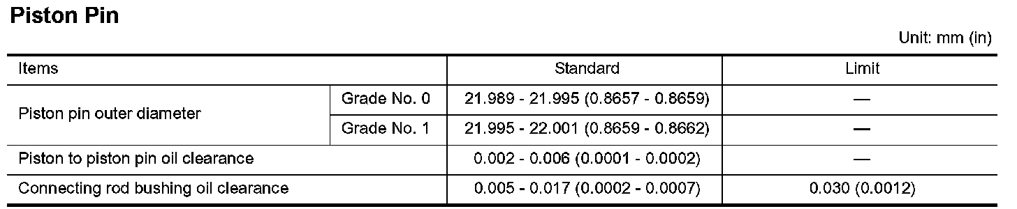 PISTON TO PISTON PIN OIL CLEARANCEPiston Pin Hole Diameter