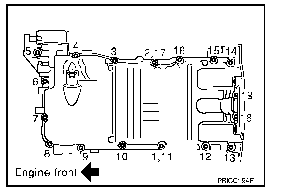 NOTE: Tighten mounting bolts No. 1 and 2 in two steps. The numerical order No. 11 and 17 shown second steps.