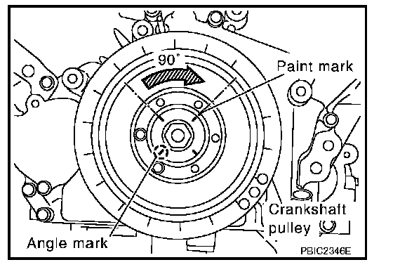 Put a paint mark on crankshaft pulley aligning with angle mark on crankshaft pulley bolt.
