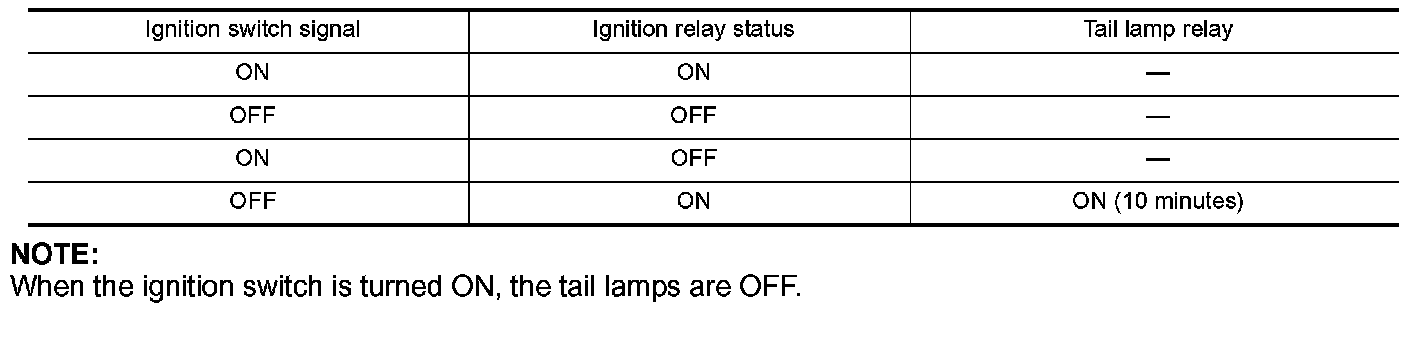 - When the state of the integrated ignition relay does not agree with the state of the ignition switch signal received via CAN communication, the IPDM E/R activates the tail lamp relay.