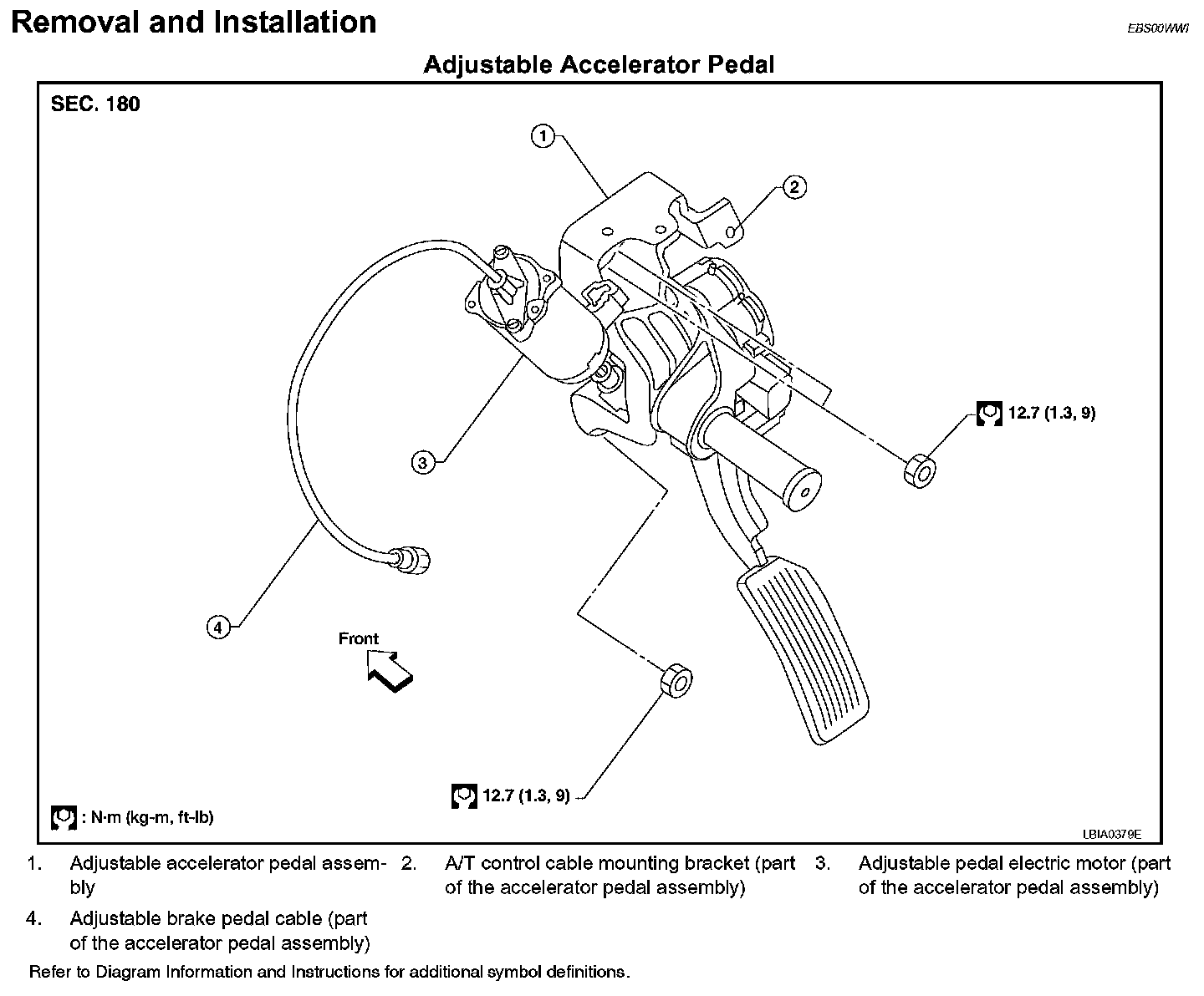 - Before removal and installation the accelerator and brake pedals must be in the front most position. This is to align the base position of the accelerator and brake pedals.