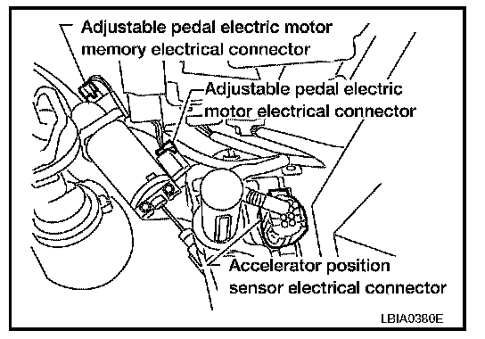 5. Disconnect the adjustable pedal electric motor memory electrical connector, if equipped.