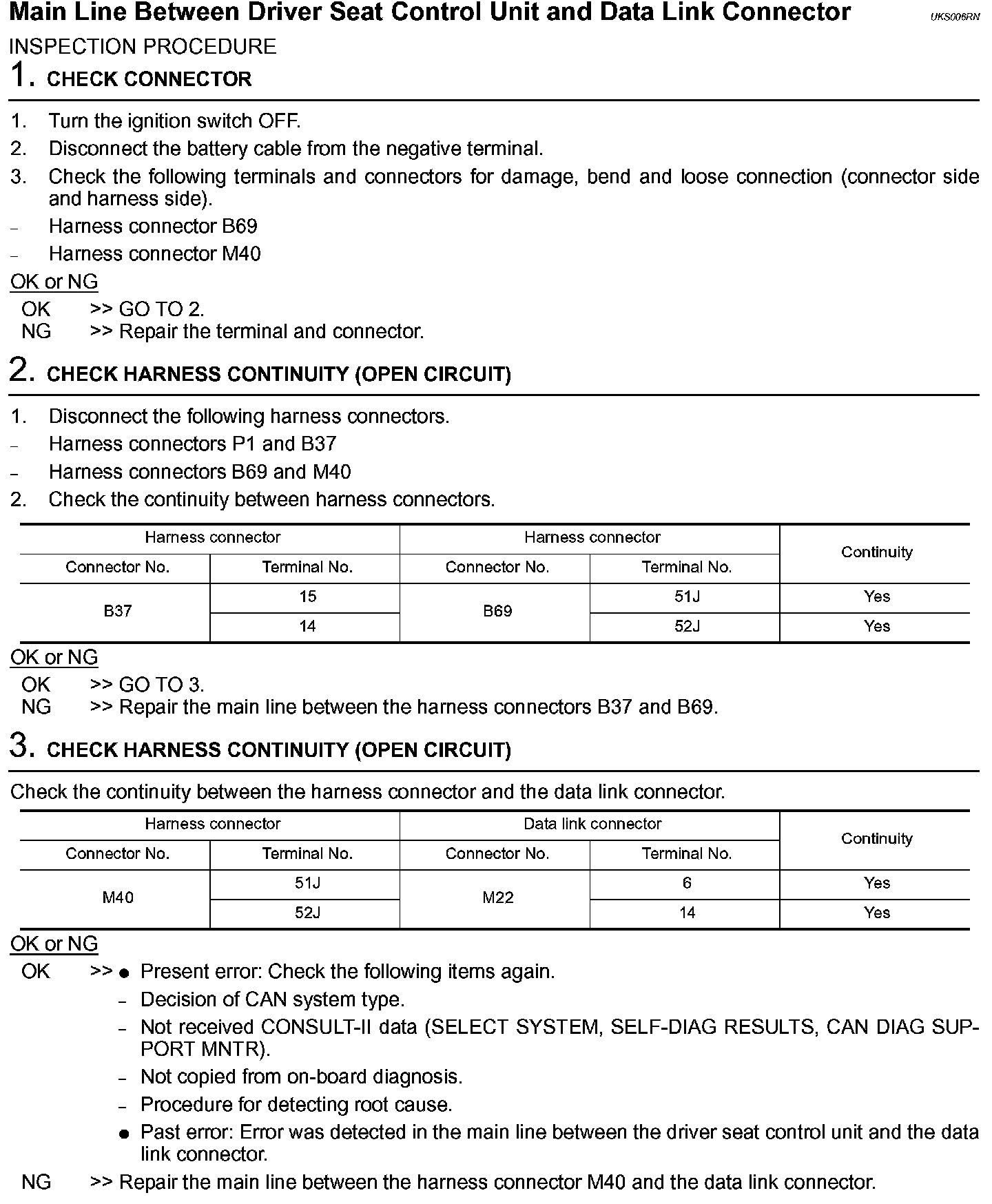 Main Line Between Driver Seat Control Unit and Data Link Connector