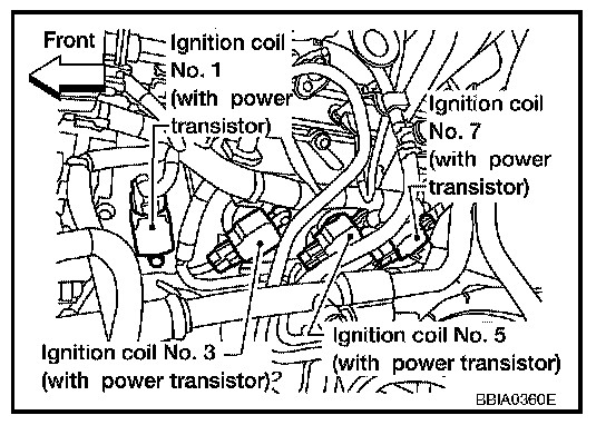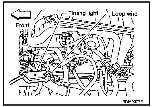 2. Connect ignition coil No. 1 and spark plug with suitable high-tension wire as shown, and attach timing light clamp to this wire.