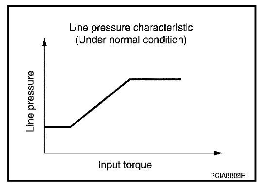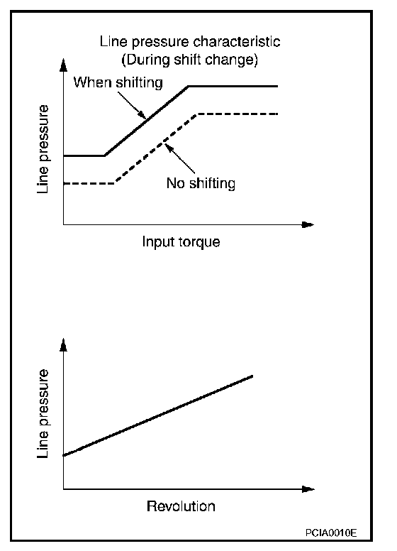 LINE PRESSURE CONTROL IS BASED ON THE TCM LINE PRESSURE CHARACTERISTIC PATTERN