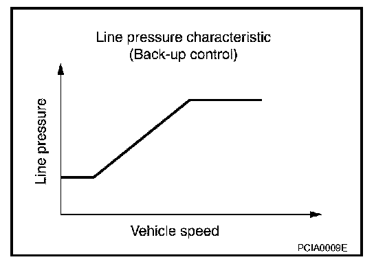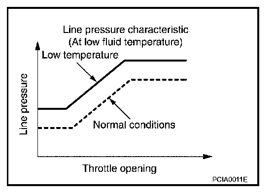 When the A/T fluid temperature drops below the prescribed temperature, in order to speed up the action of each friction element, the line pressure is set higher than the normal line pressure characteristic.