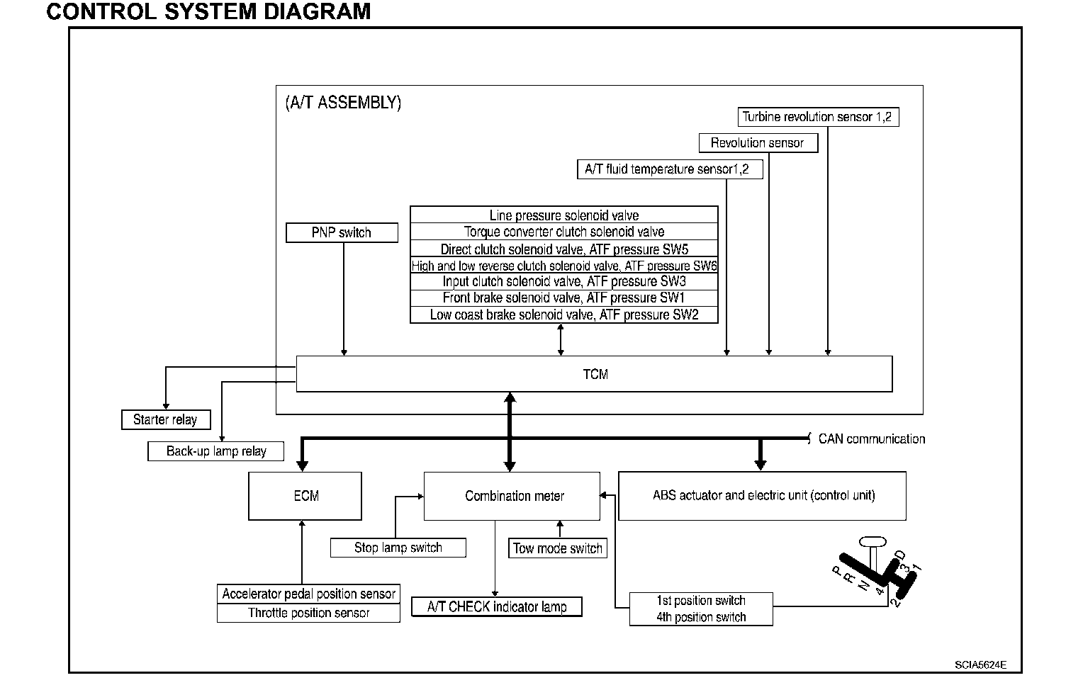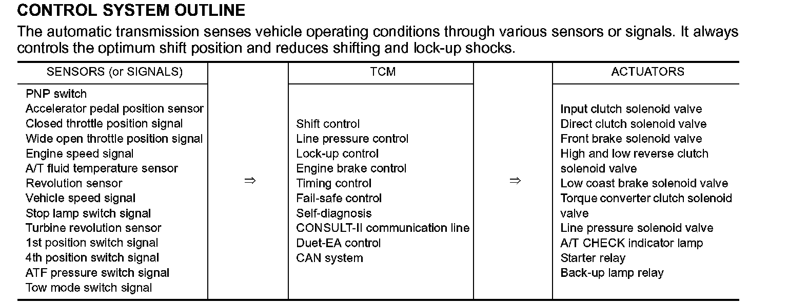 ^ Determine required line pressure, shifting point, lock-up operation, and engine brake operation.