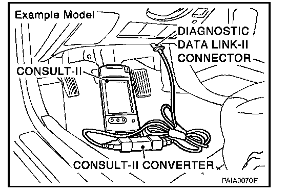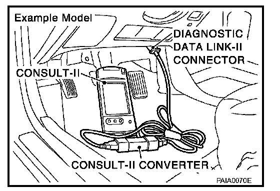 1. With ignition switch OFF, connect CONSULT-II and CONSULT-II CONVERTER to data link connector and turn ignition switch ON.