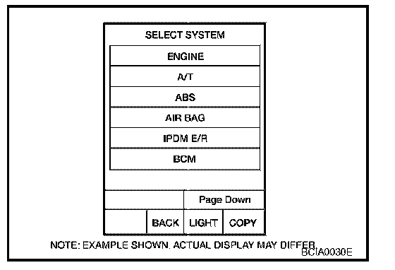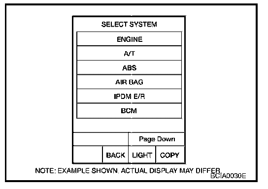 3. Touch "BCM" on "SELECT SYSTEM" screen.