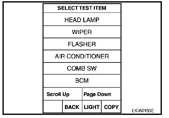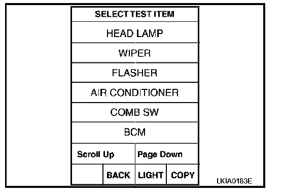 4. Touch "BCM" on "SELECT TEST ITEM" screen.