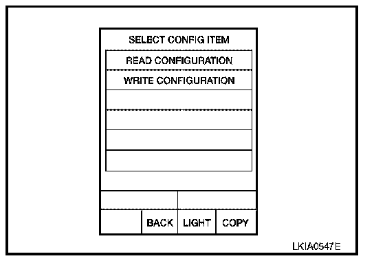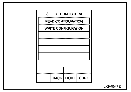 7. Touch "READ CONFIGURATION" on "SELECT CONFIG ITEM" screen.