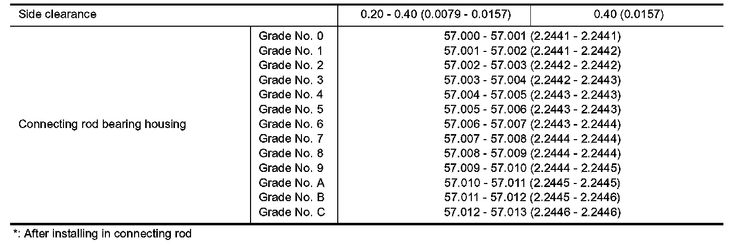^ If measured value exceeds the repair limit, replace the connecting rod bearings, and measure again. If it still exceeds the repair limit, replace the crankshaft also.