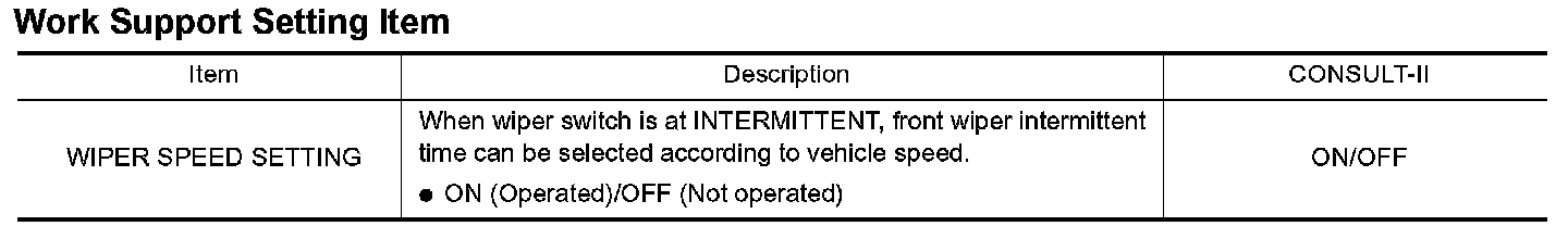 3. Touch "WIPER SPEED SETTING" on the "SELECT WORK ITEM" screen.