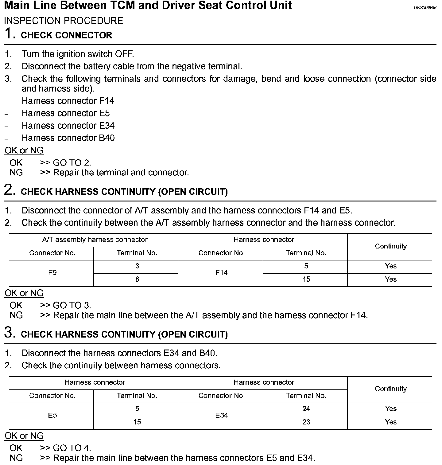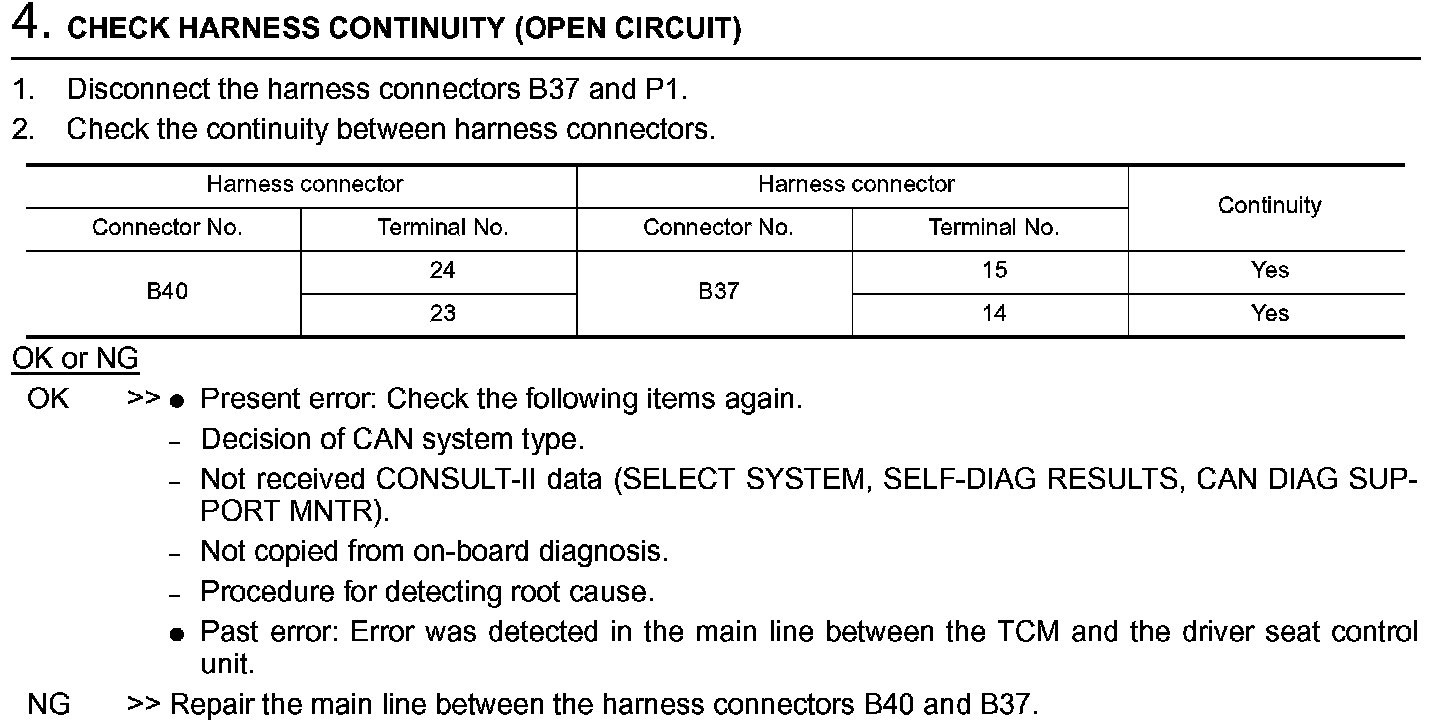 Main Line Between TCM and Driver Seat Control Unit