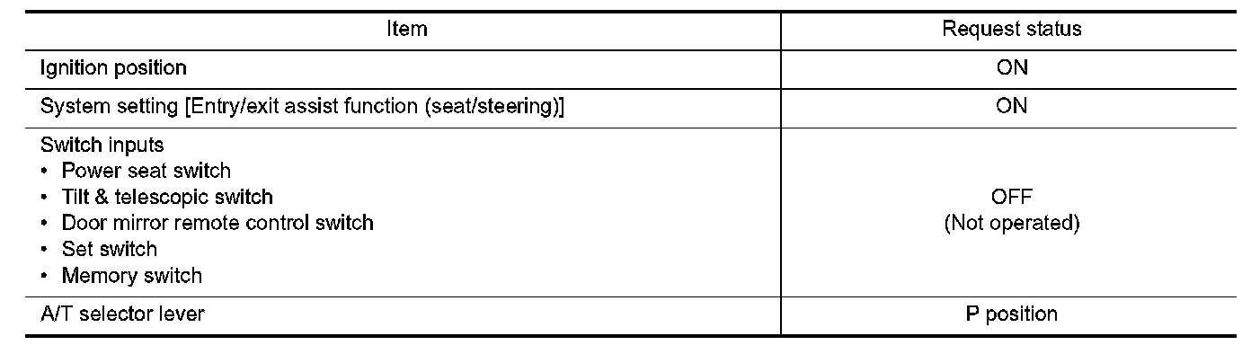 Satisfy all of the following items. The seat synchronization function is not performed if these items are not satisfied.