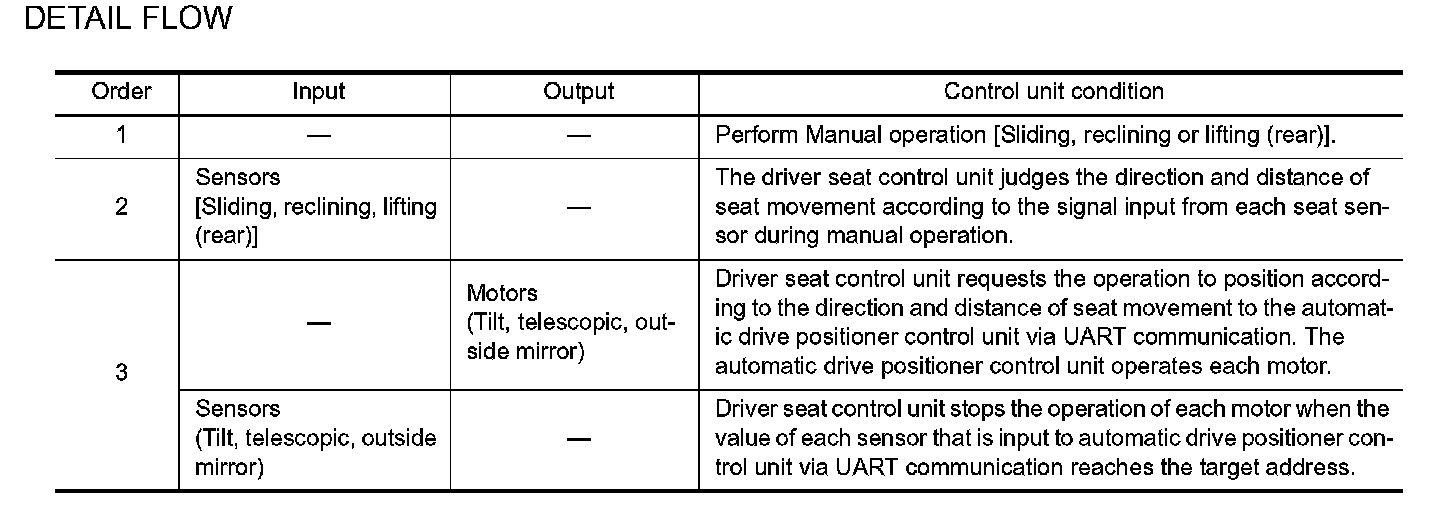 - The seat synchronization function will not operate if seat adjusting value is more than limit value.