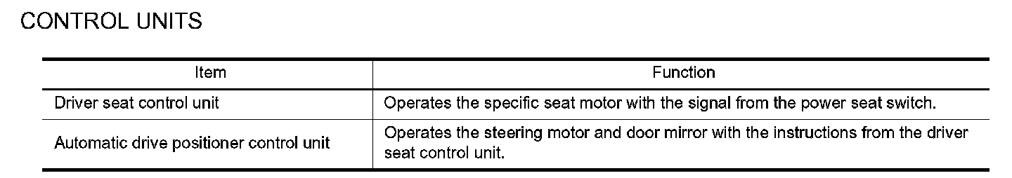 SEAT SYNCHRONIZATION FUNCTION : Component Description