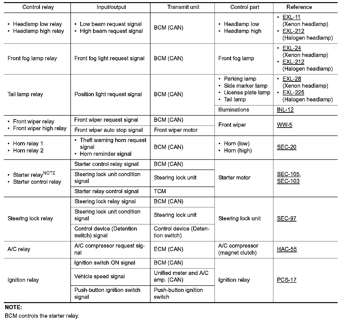 IPDM E/R activates the internal control circuit to perform the relay ON-OFF control according to the input signals from various sensors and the request signals received from control units via CAN communication.