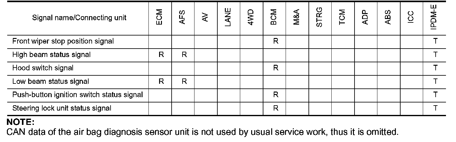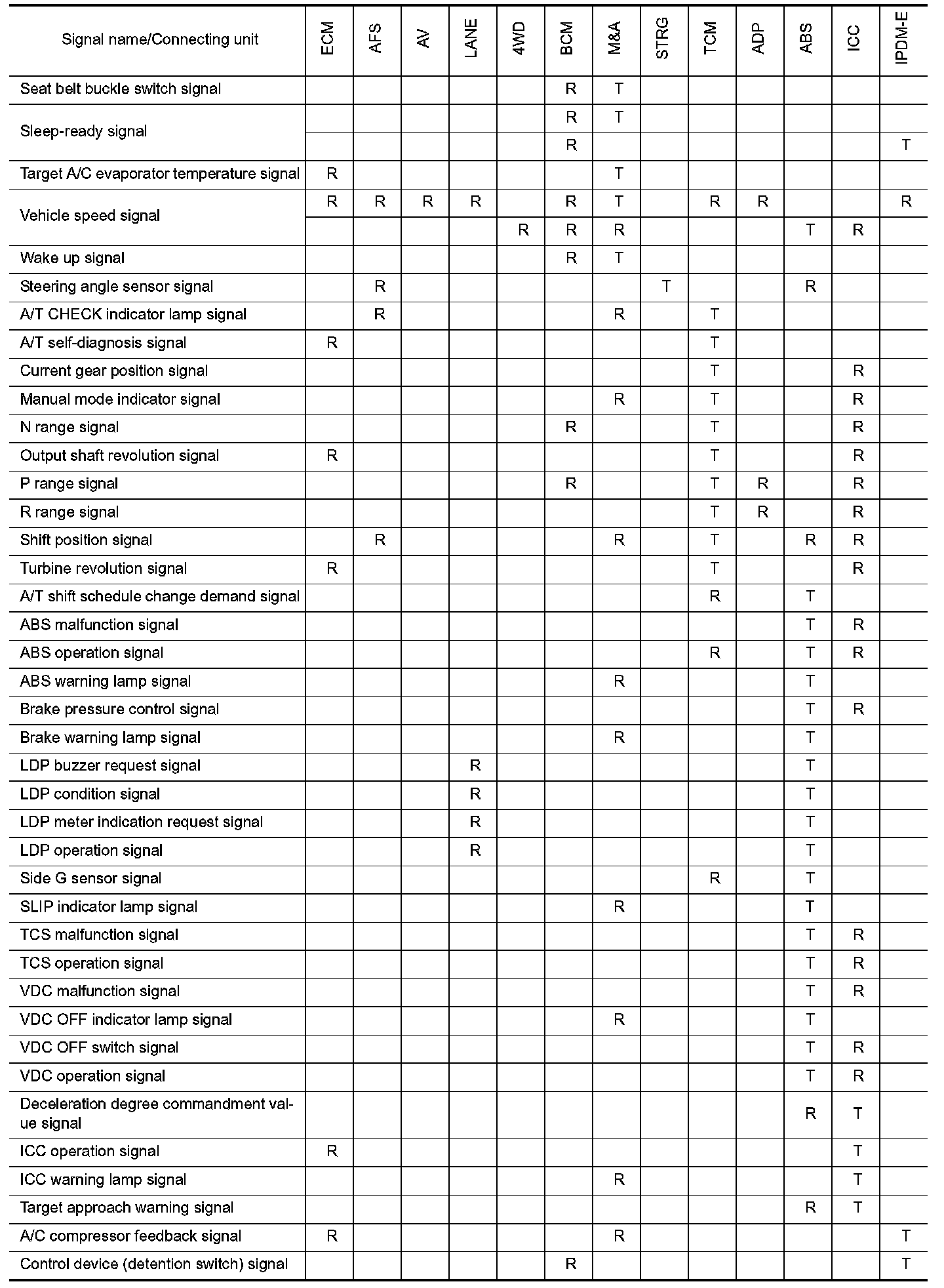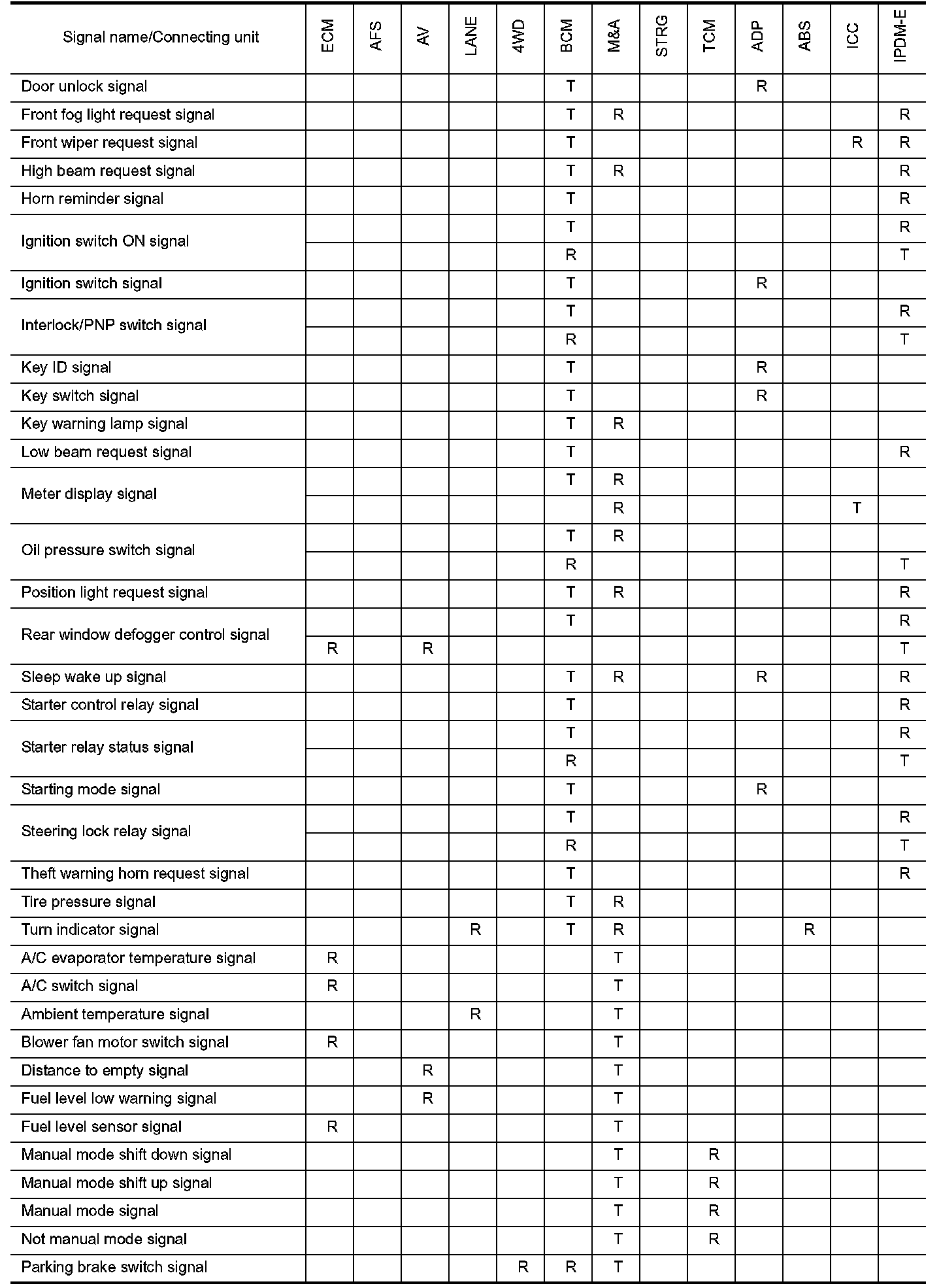 CAN Communication Signal ChartRefer to LAN-17, "How to Use CAN Communication Signal Chart" for how to use CAN communication signal chart. Trouble Diagnosis